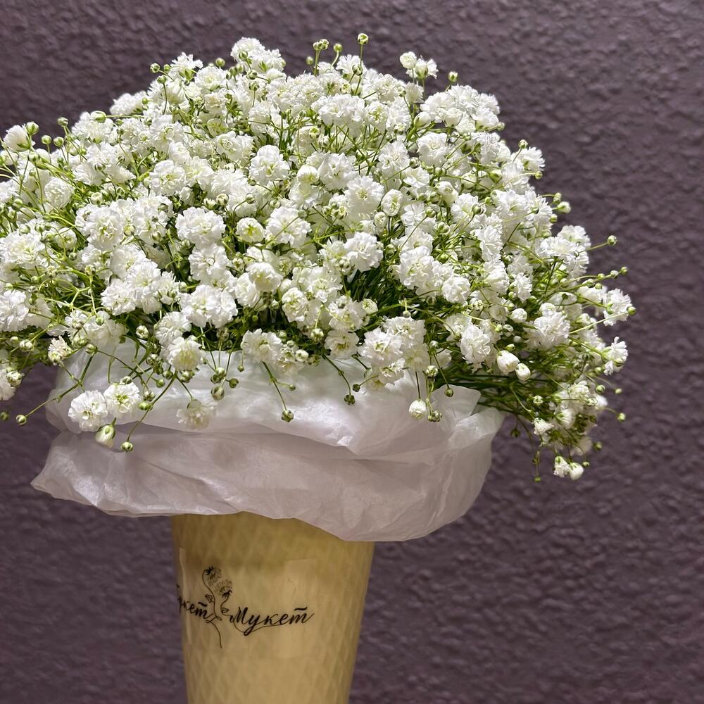 Гипсофила – 4 шт.Тишью – 1 шт.Оазис флористический – 1 шт.рожок декоративный – 1 шт.