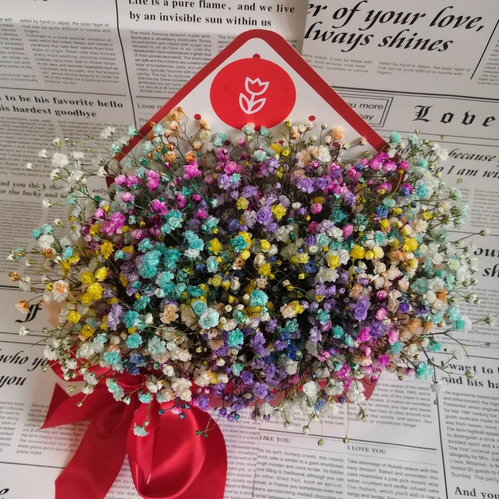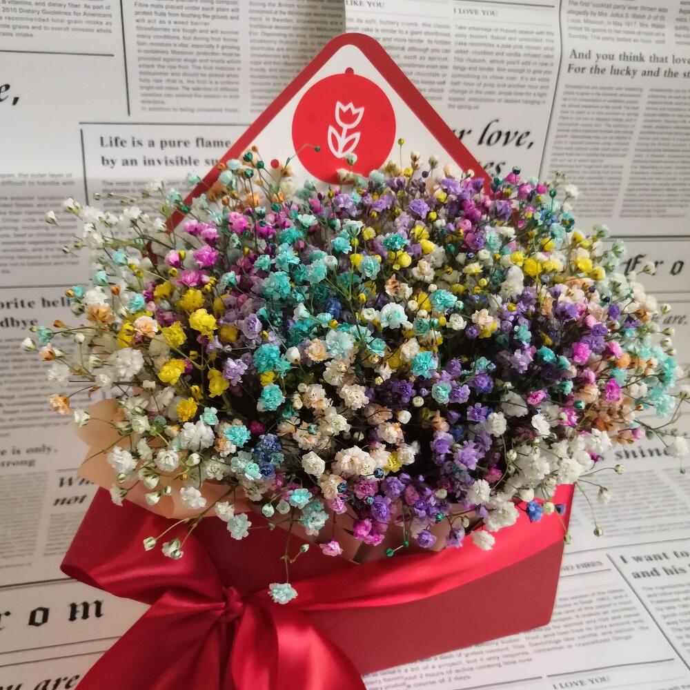 Гипсофила – 6 шт.конверт картонный – 1 шт.Лента атласная – 1 шт.Оазис флористический – 1 шт.