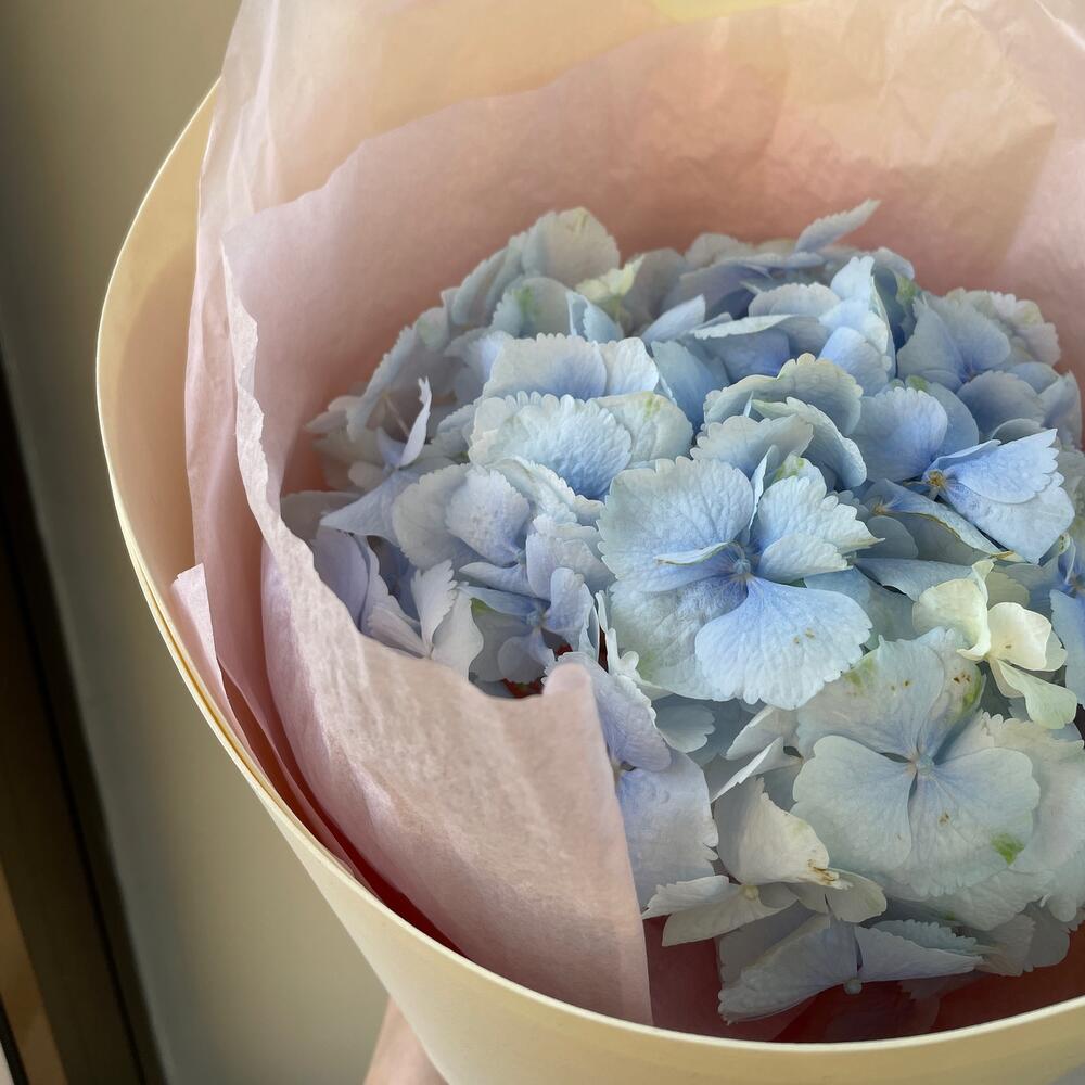 Гортензия голубая в дизайнерской упаковке "Жозефина"