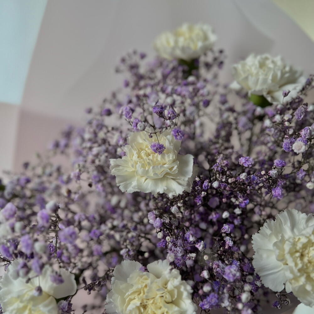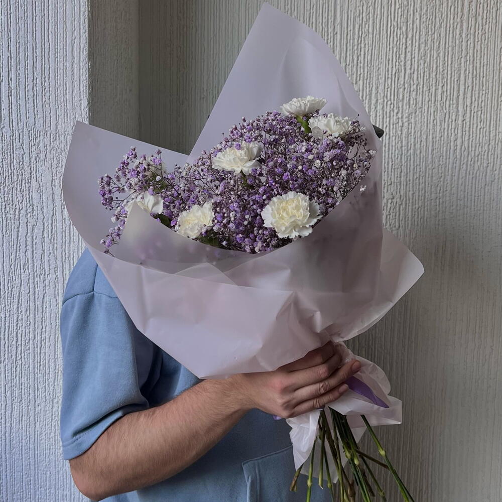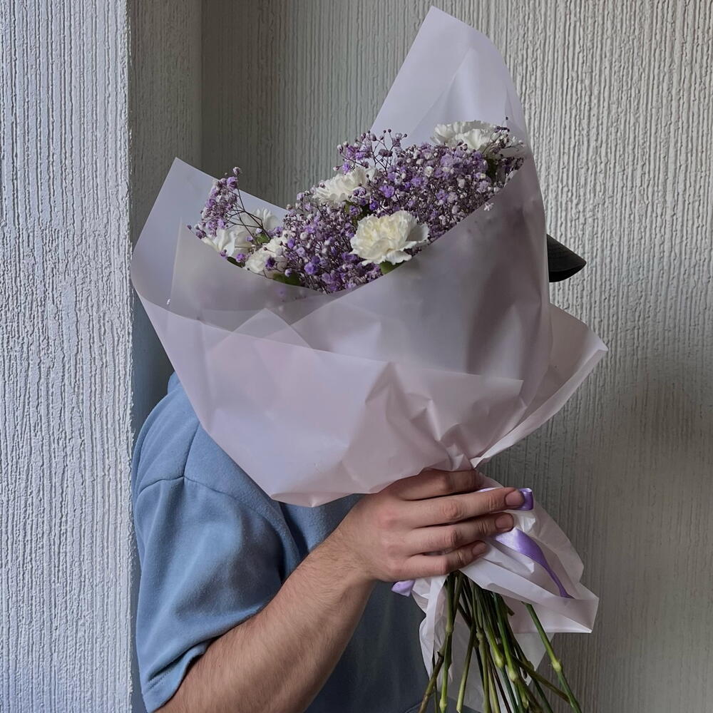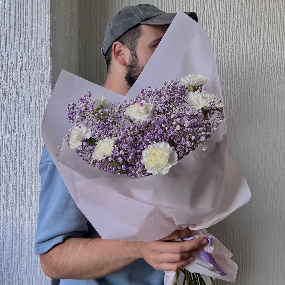 15 лавандовых гвоздик с эвкалиптом (букет N 24)
