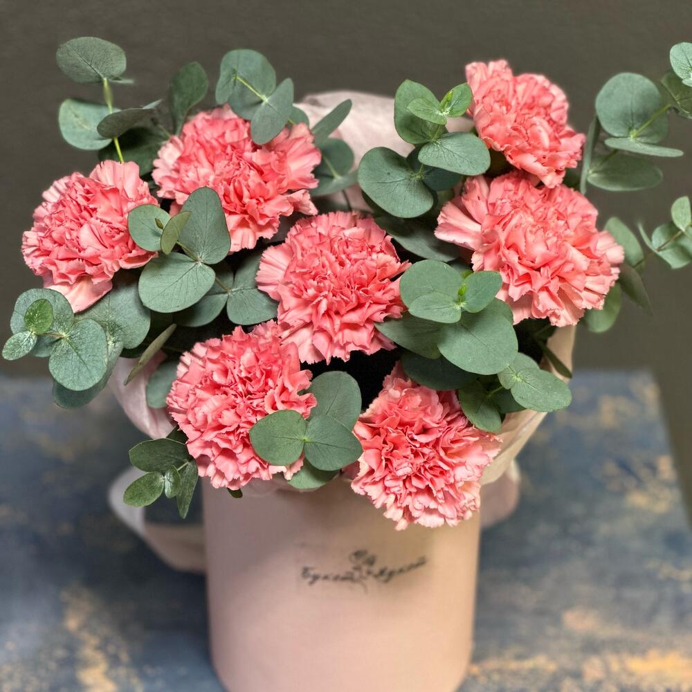 Конфетные Диантусы в коробке(гвоздика,эвкалипт)