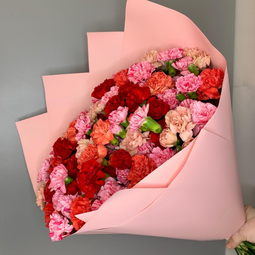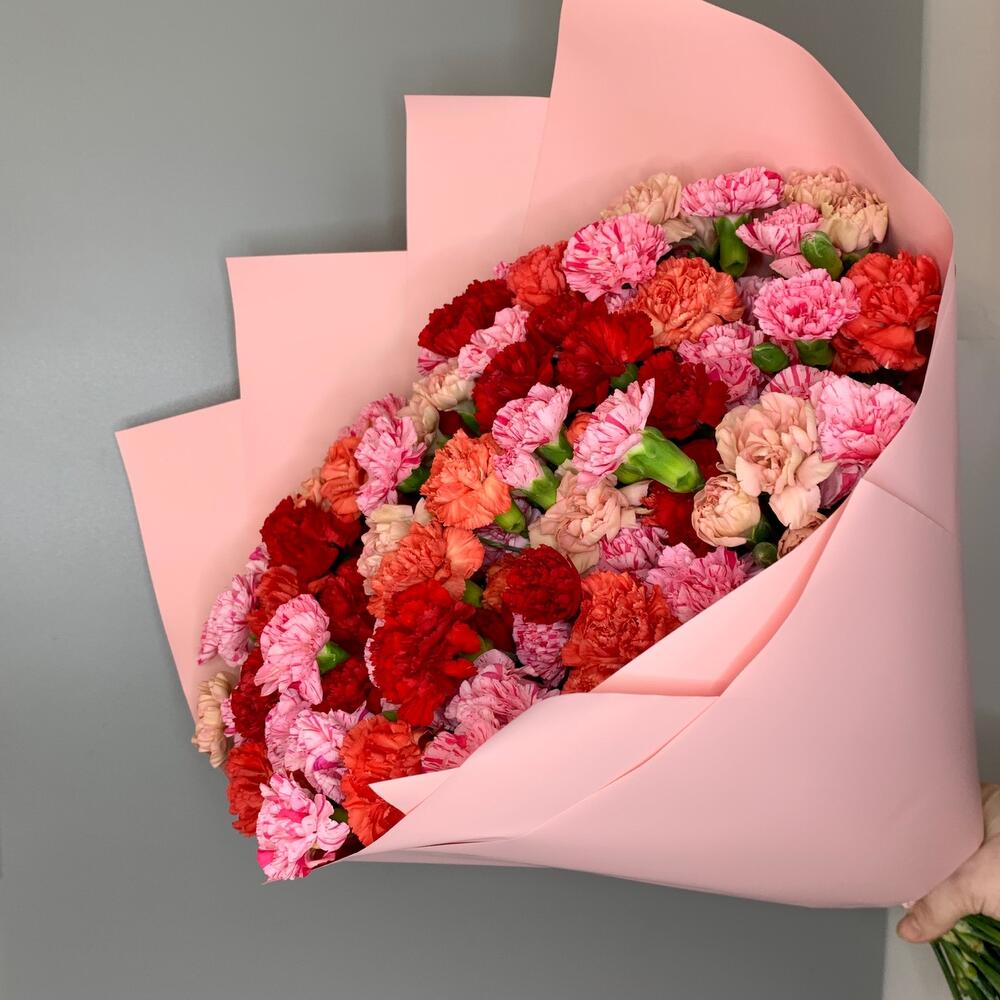 Лента атласная – 2 шт.Диантус кустовой – 45 шт.Дизайнерская упаковка – 2 шт.