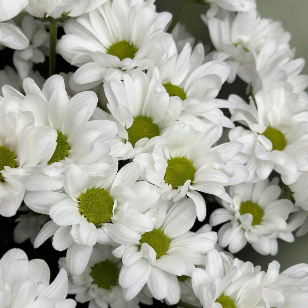 Хризантема кустовая – 15 шт.Лента атласная – 1 шт.Дизайнерская упаковка – 2 шт.