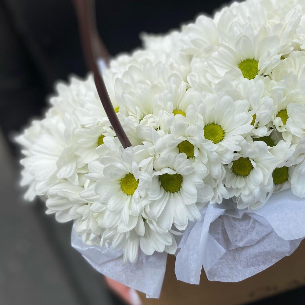 Кустовые ромашки в корзине 25 шт