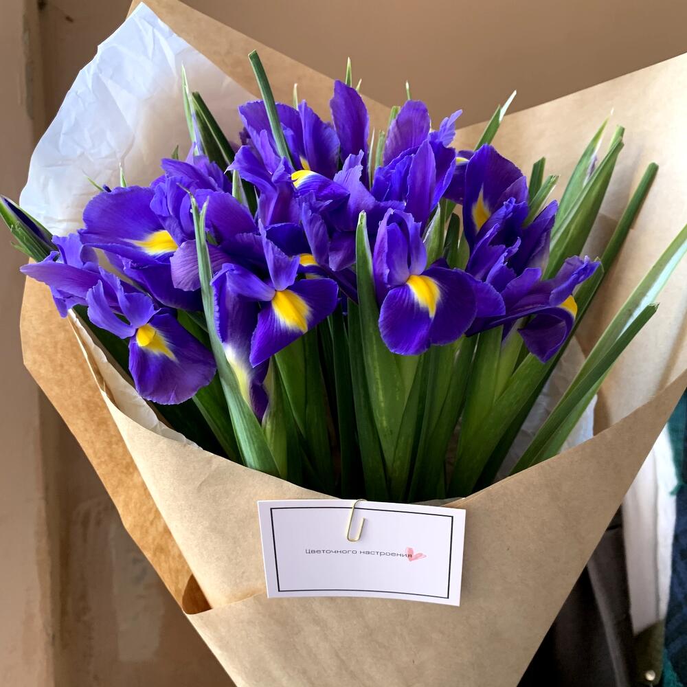 Крафтовая упаковка – 1 шт.ирисы синие – 15 шт.