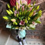 Букет из 19 белых и розовых лилий “Авеню”