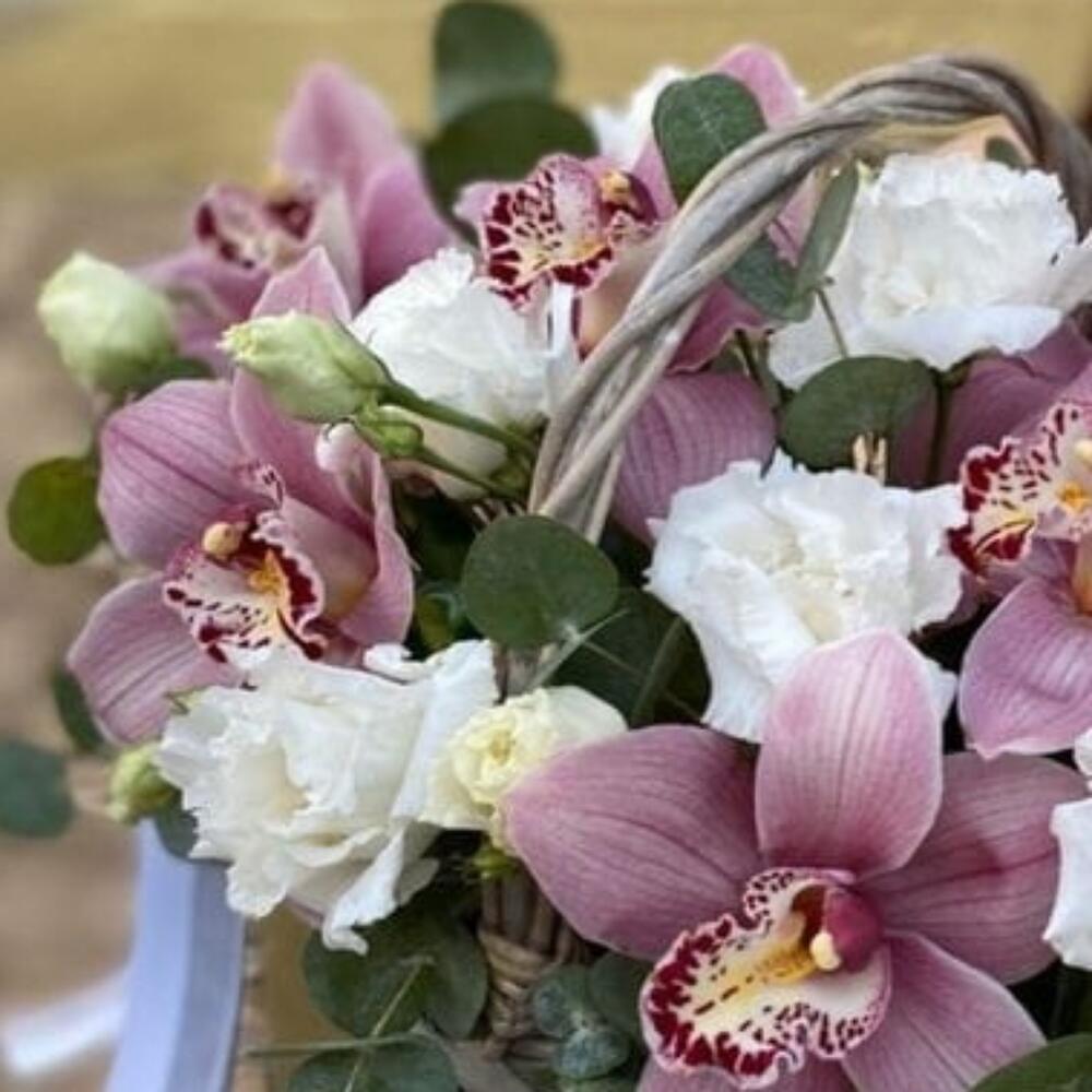 Корзина с лизиантусом и Орхидей “Агния”