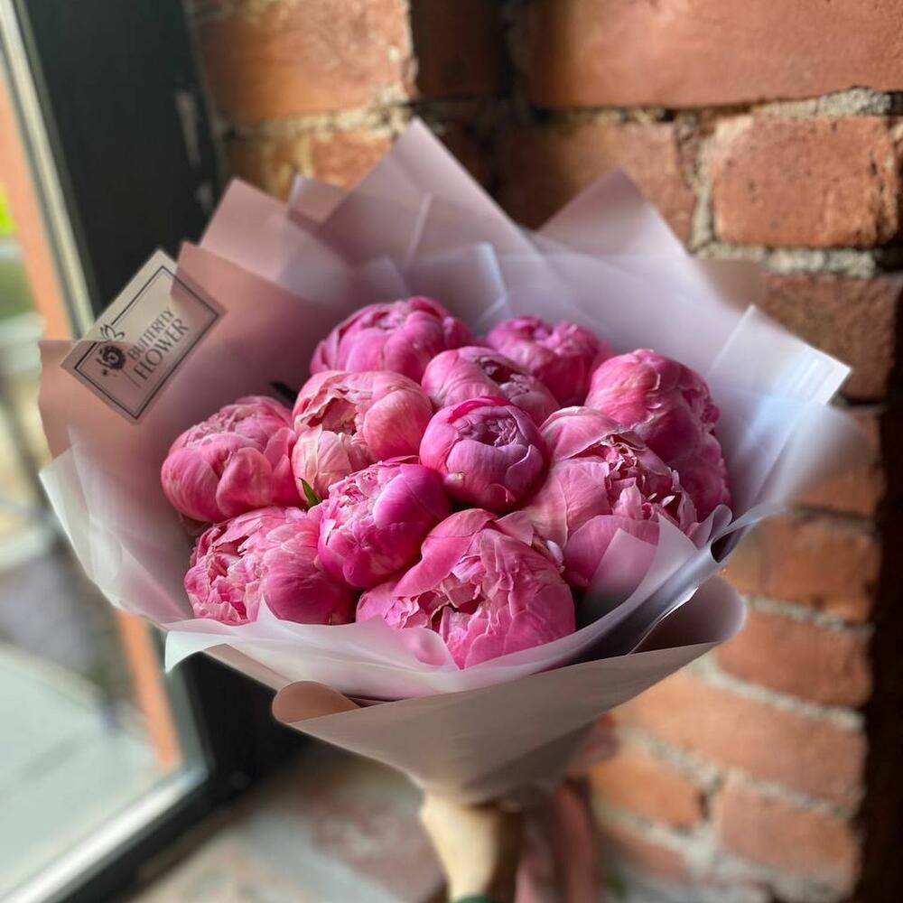 Букет из 11 ярко-розовых пионов в дизайнерской упаковке "Феликс Суприм"