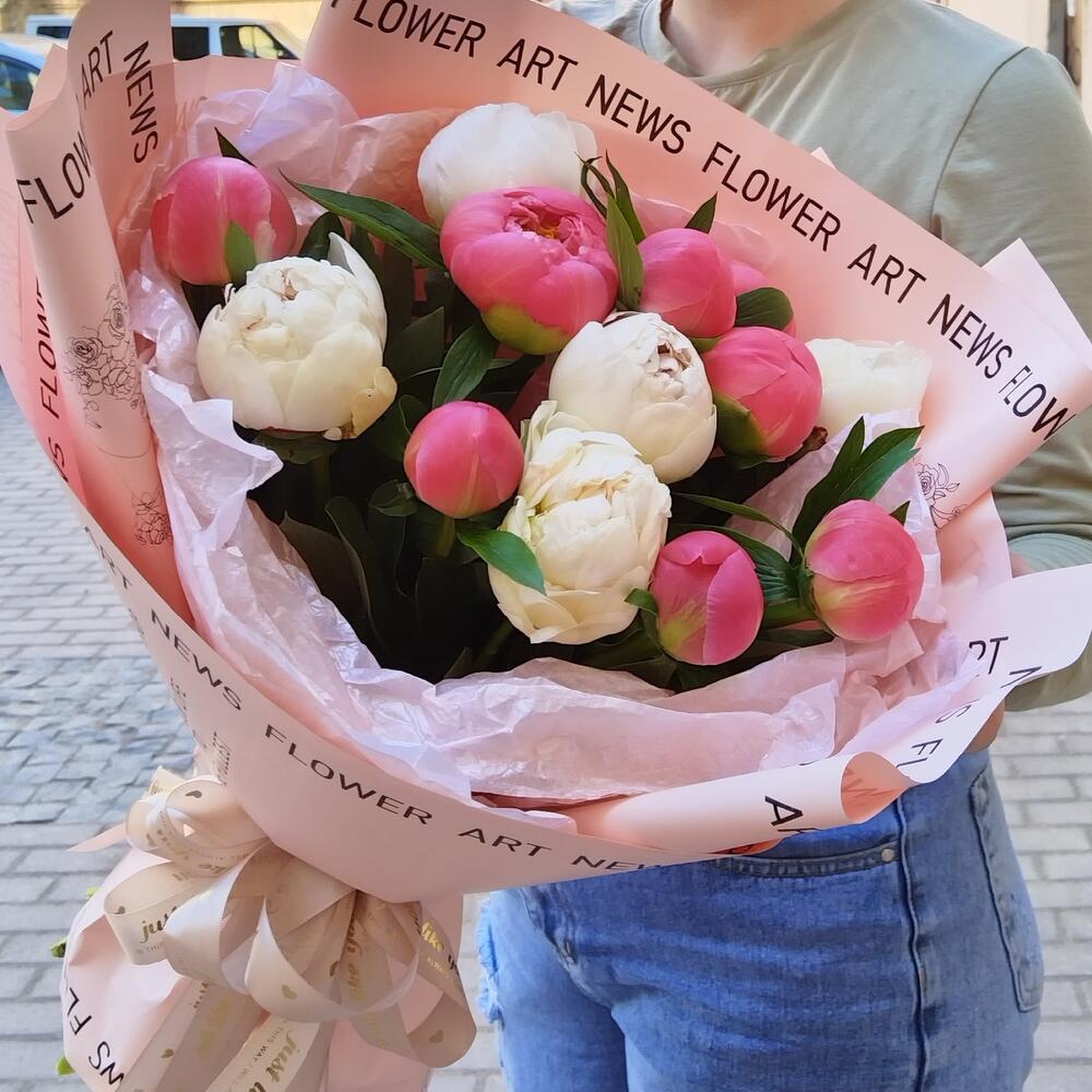 пион duchesse de nemours – 5 шт.Пион coral sunset – 8 шт.Упаковка матовая – 1 шт.Тишью – 1 шт.Лента атласная – 1 шт.
