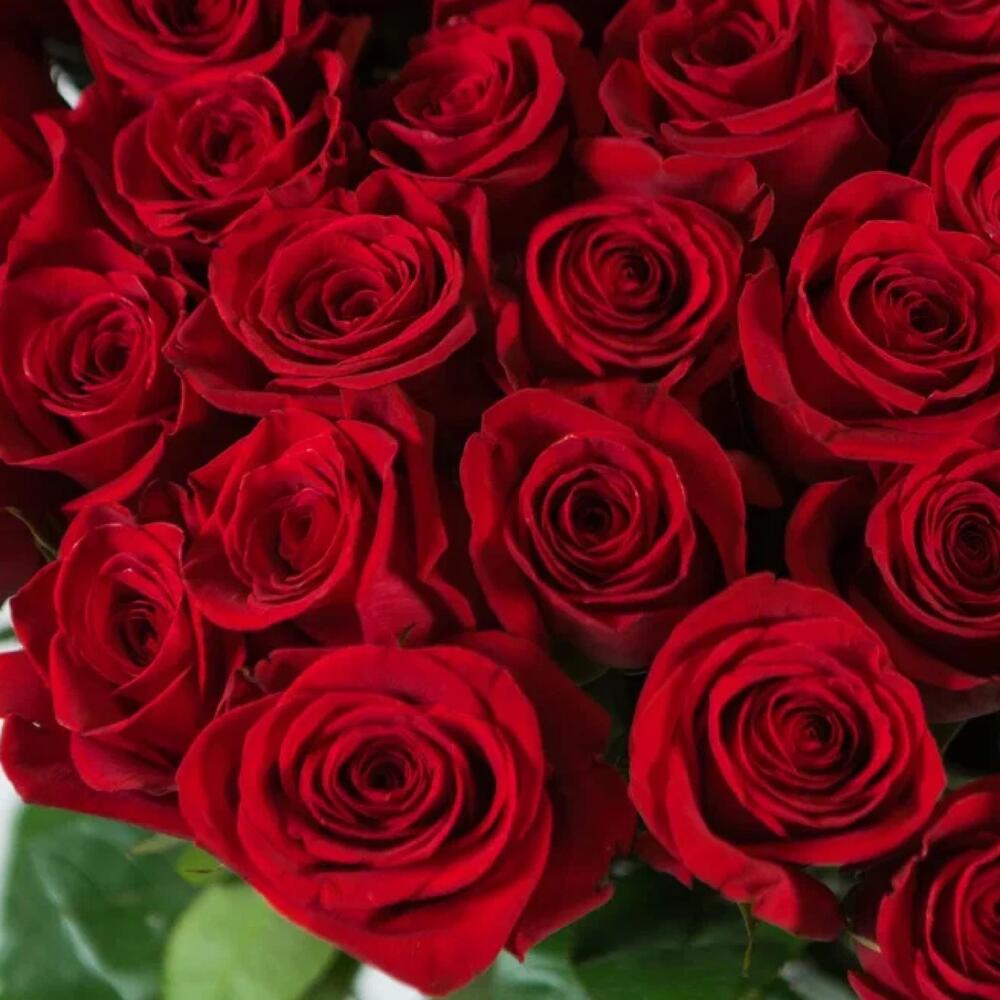 роза explorer 50 см – 51 шт.Пленка прозрачная – 1 шт.Лента атласная – 1 шт.