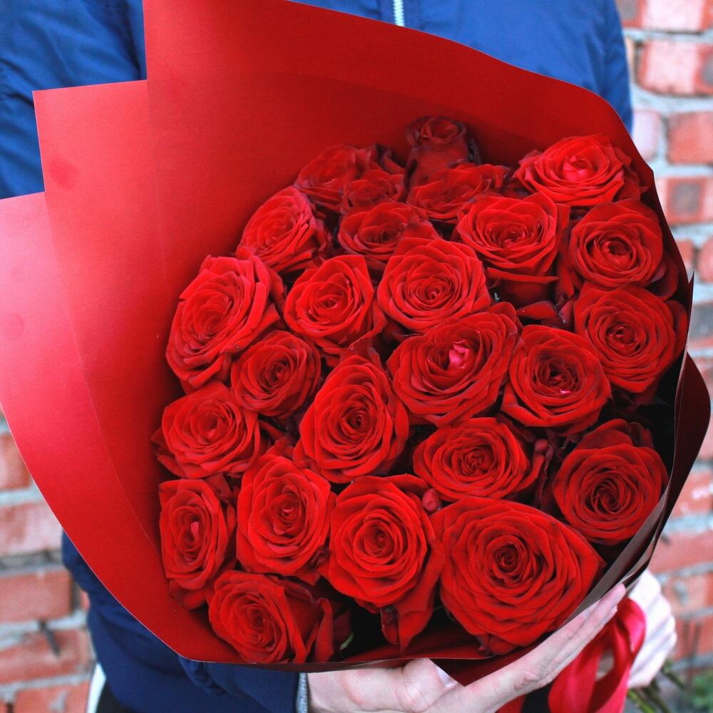 Букет из 25 красных роз (Кения) 30 см