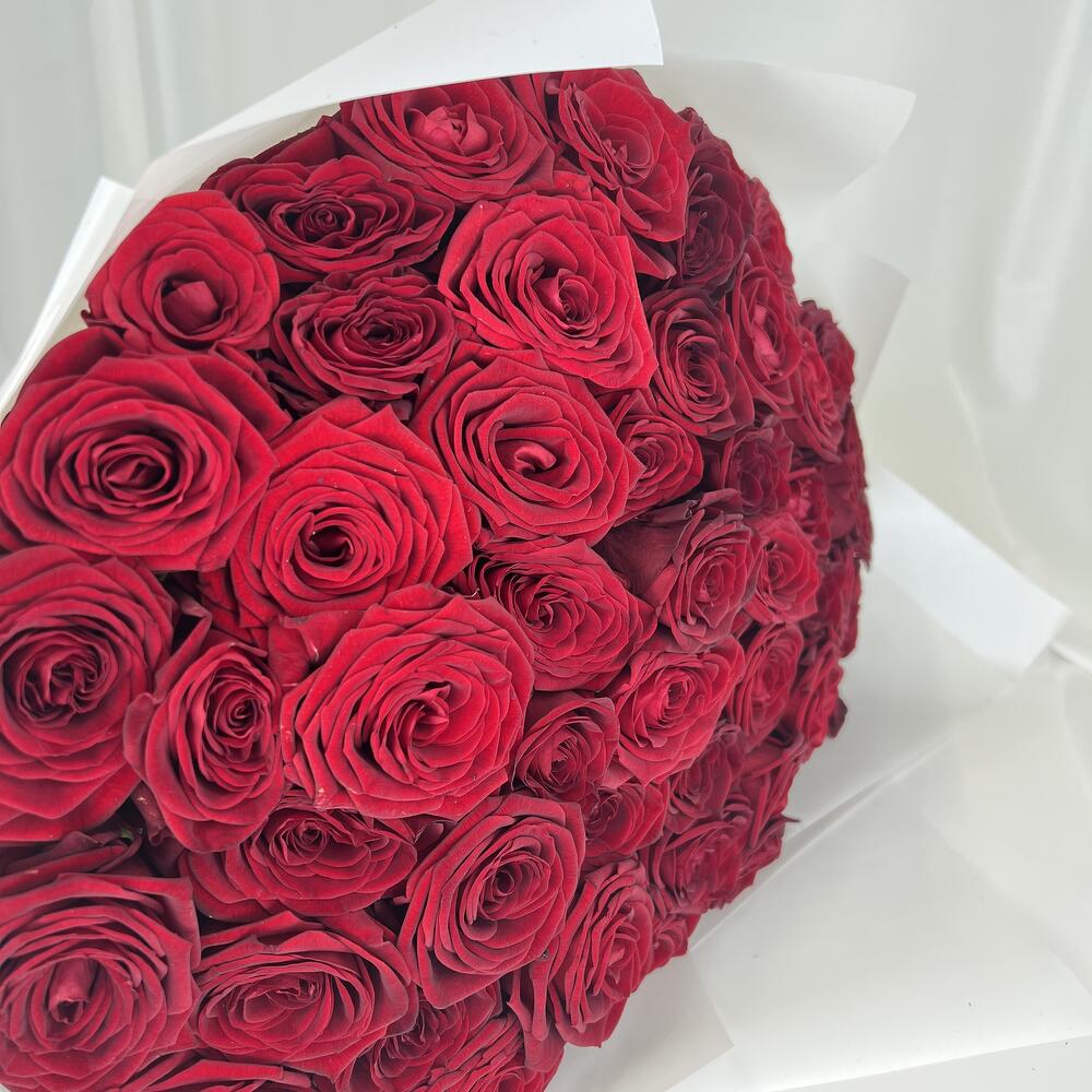 Роза – 51 шт.Упаковка – 3 шт.Атласная лента – 1 шт.