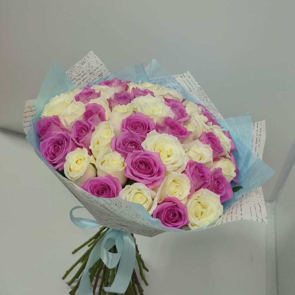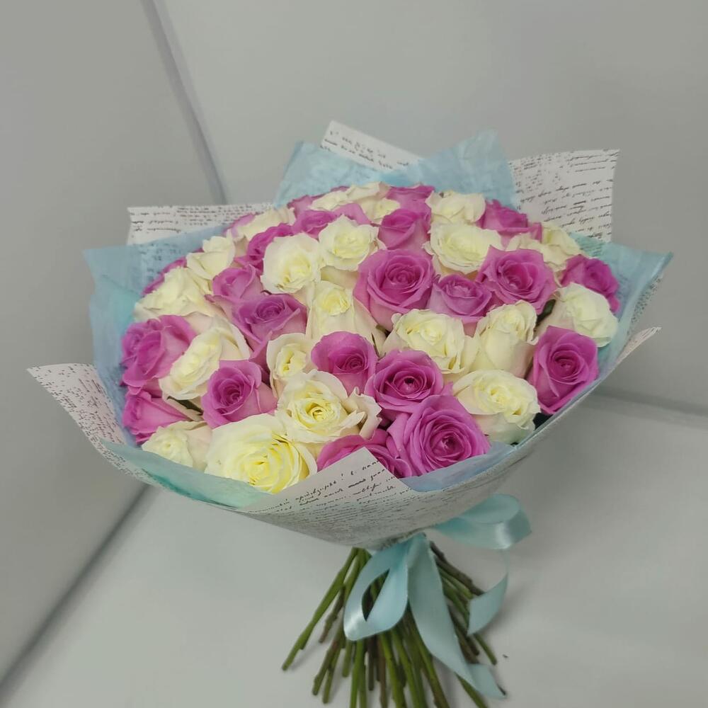 роза кения микс 40 см – 51 шт.Дизайнерская упаковка – 1 шт.