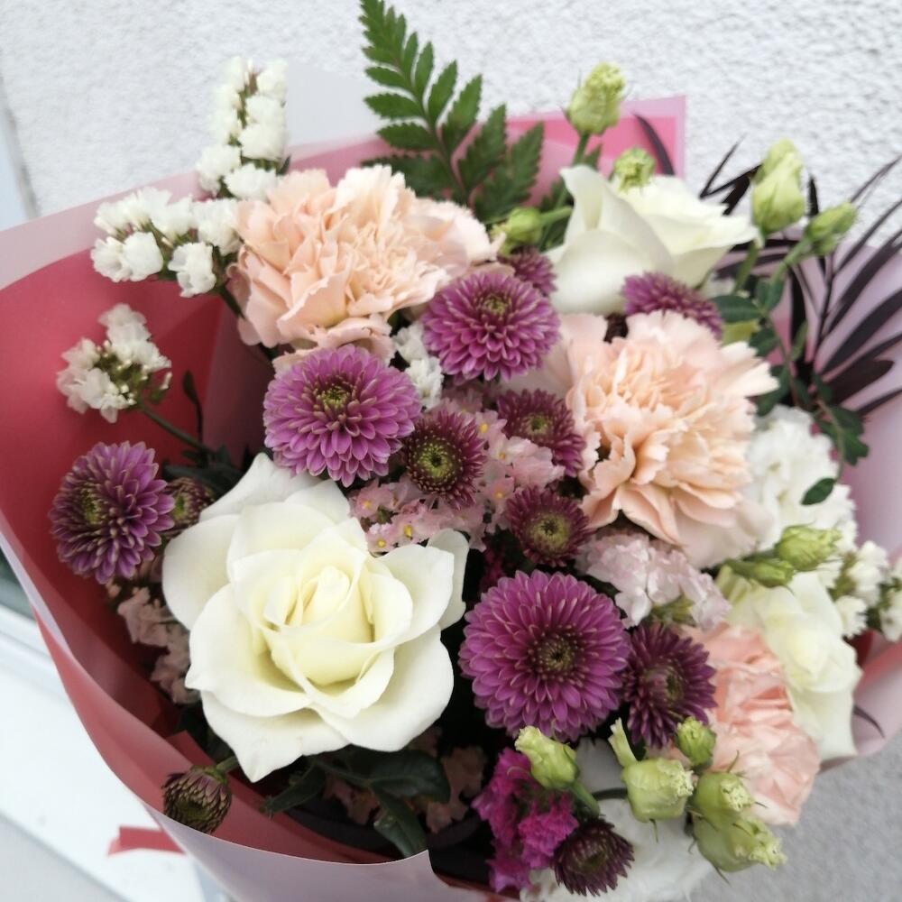 Букет из хризантем, роз, лизиантуса "Классика"