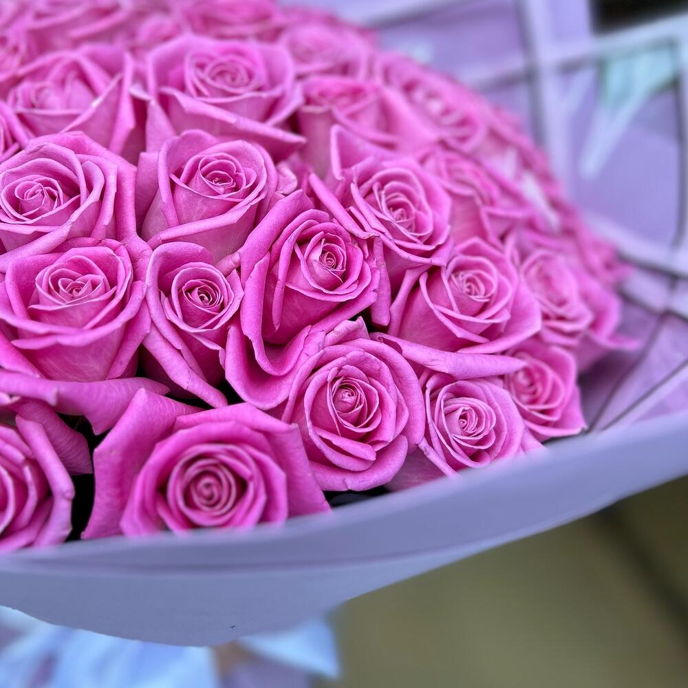 Букет из красивой 51 розовой розы в модном оформлении