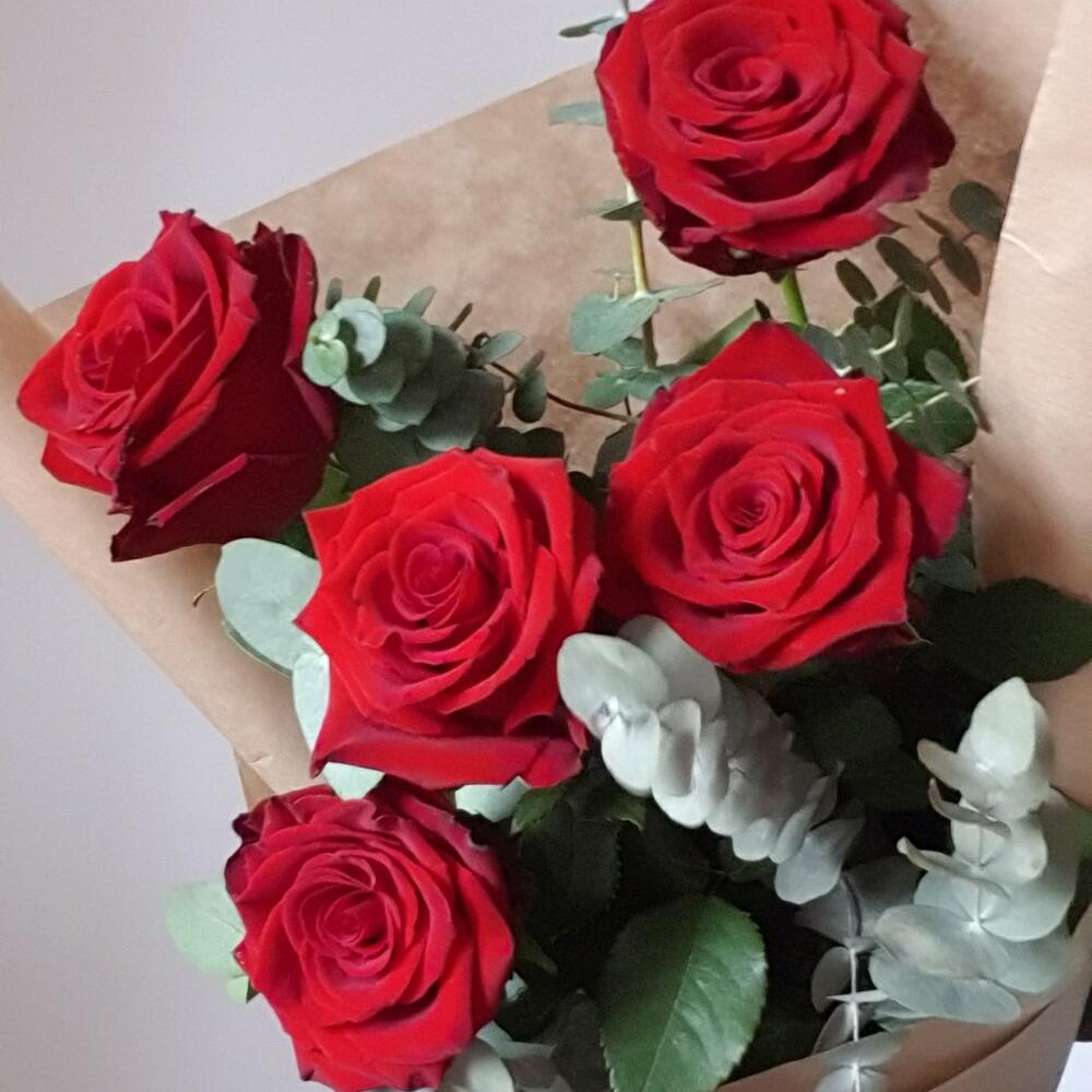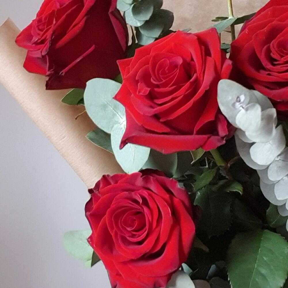 Букет из роз и эвкалипта