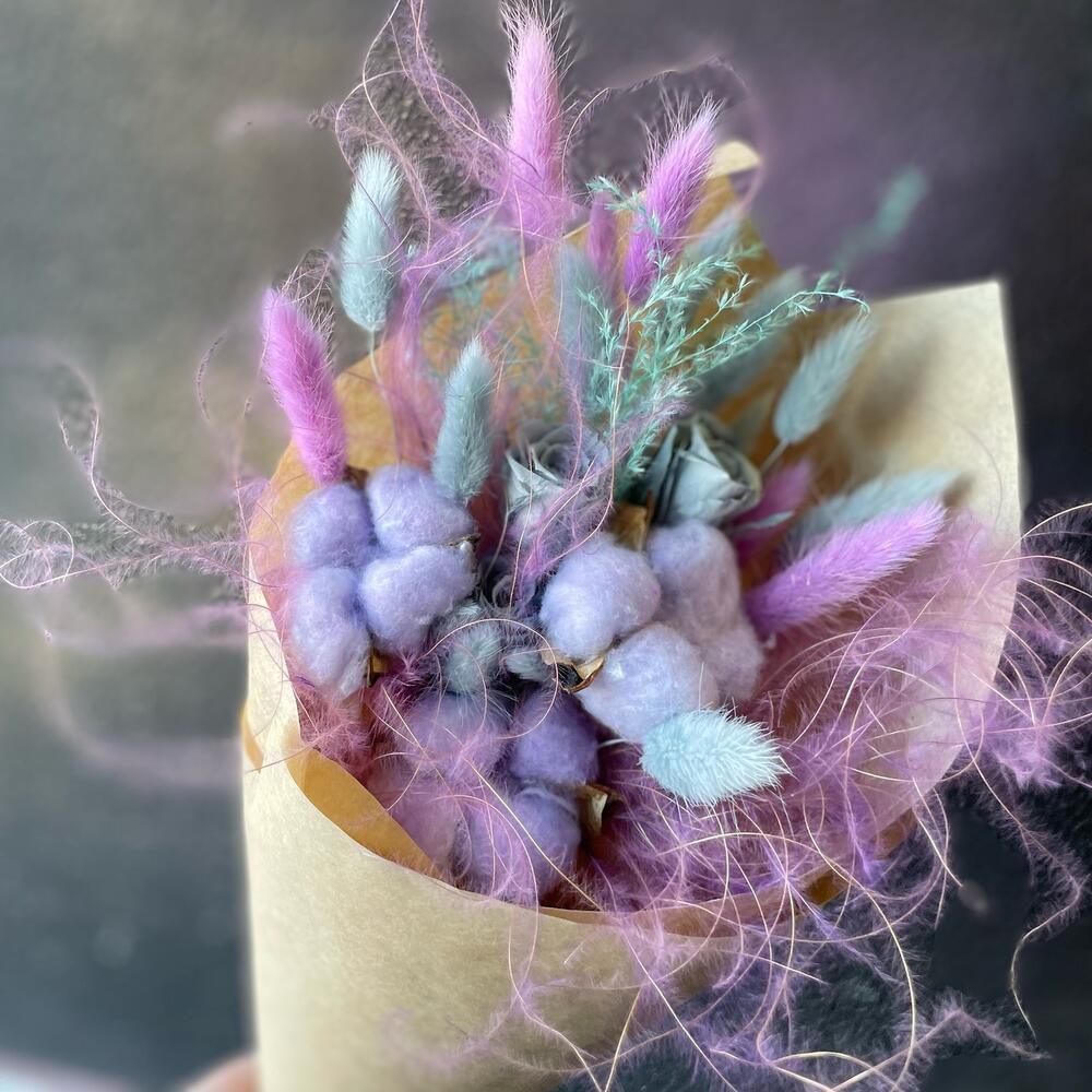 Букет из сухоцветов в сиренево голубой гамме