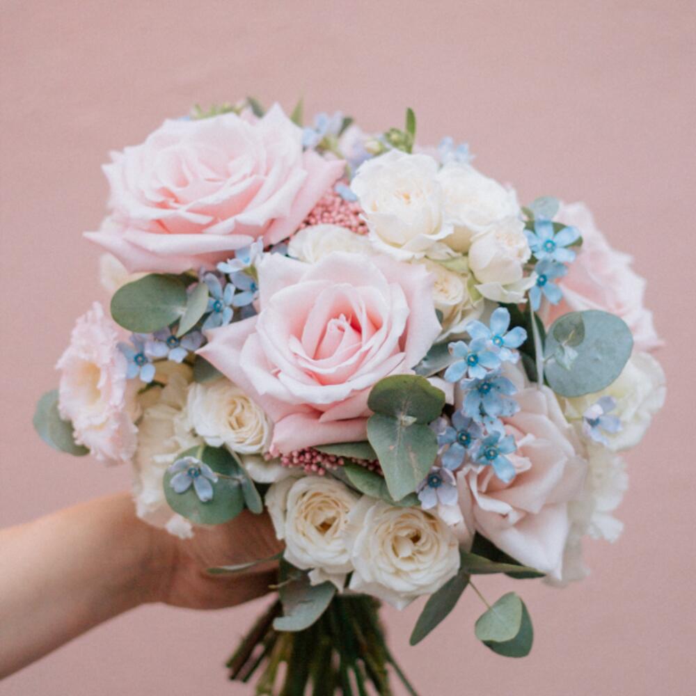 Букет невесты в розово-голубой гамме
