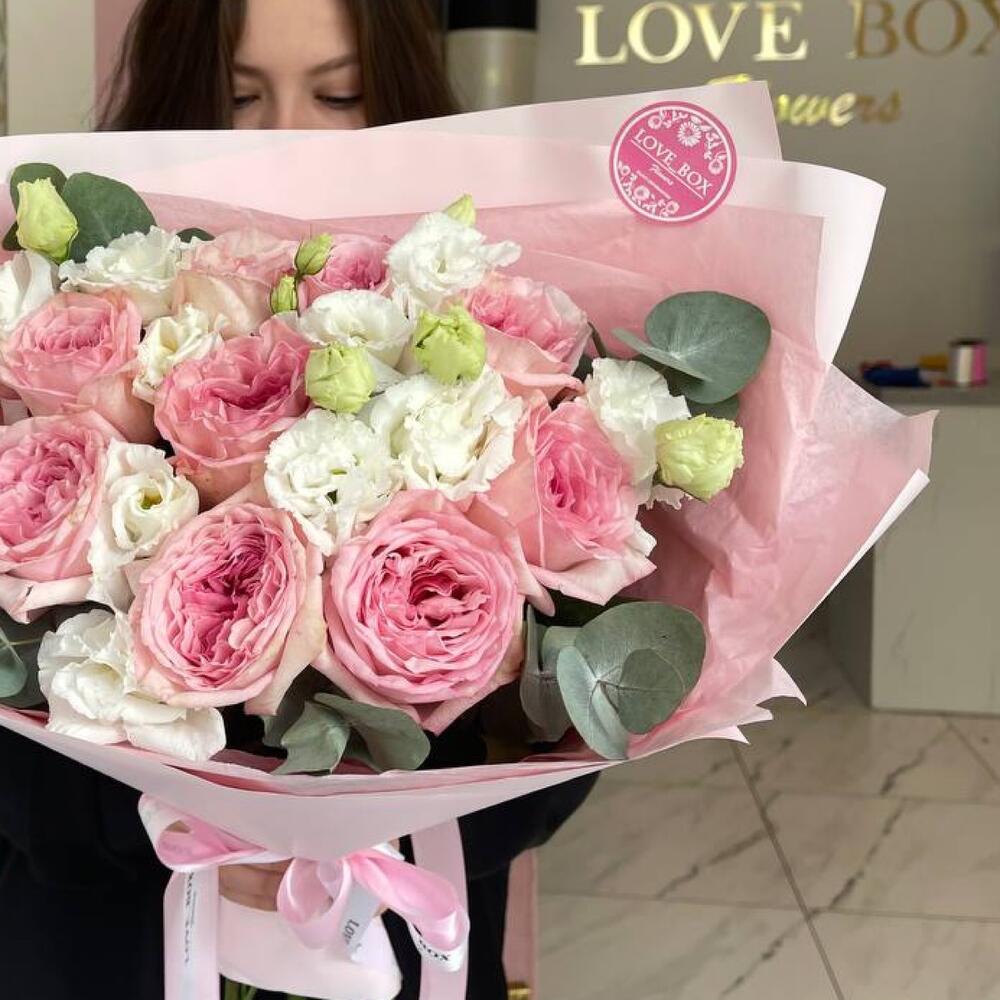 Букет нежный микс с эвкалиптом и пионовидными розами