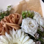 Букет с пионовидной розой, герберой и лизиантус «Капуччино»