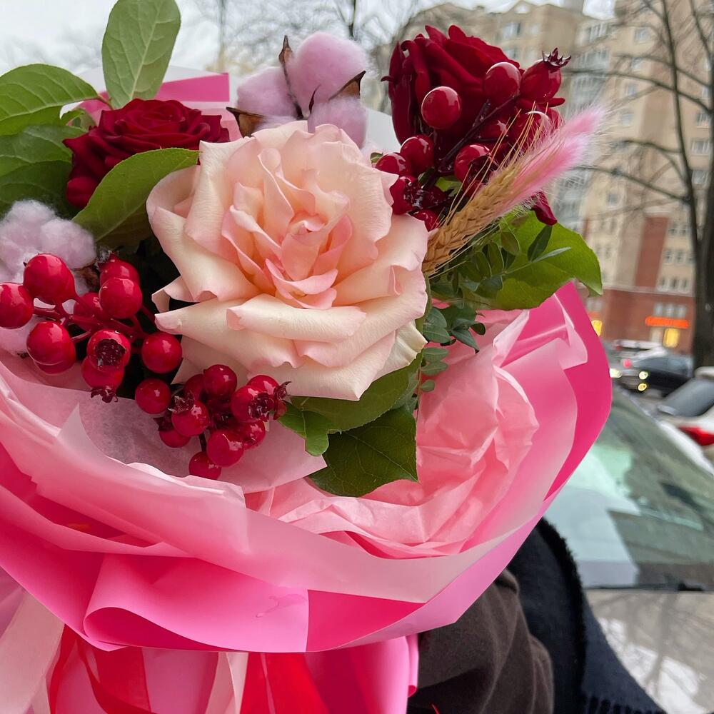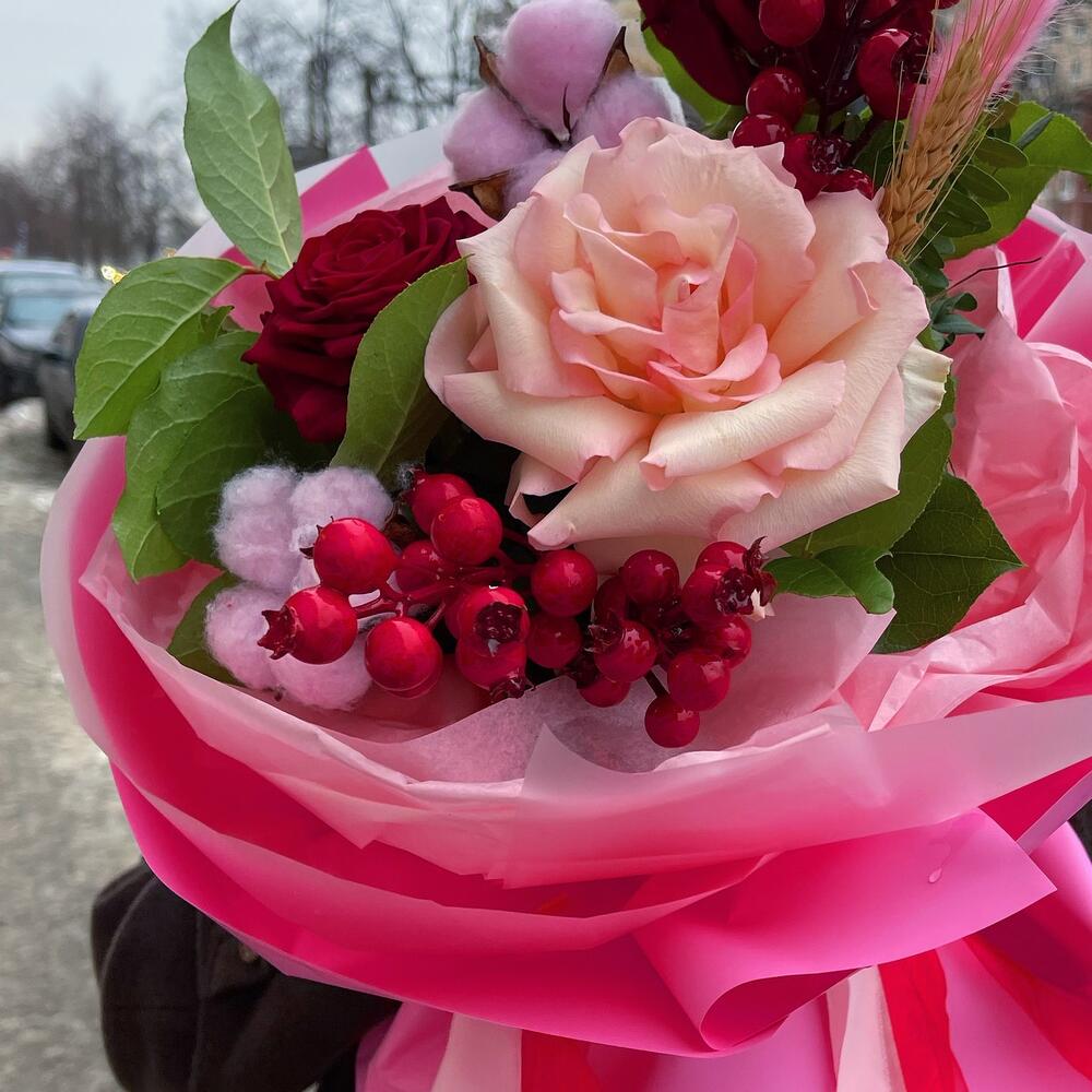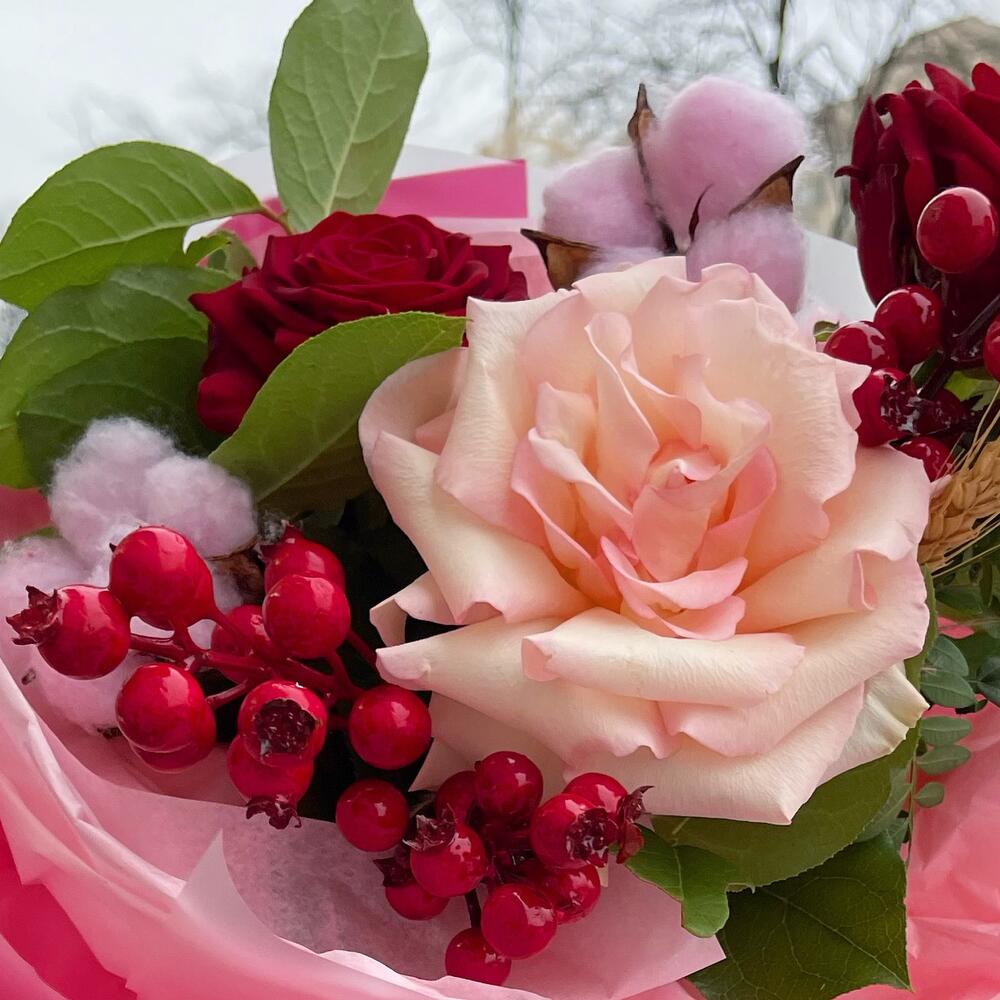 Букет с ягодками и французской розой