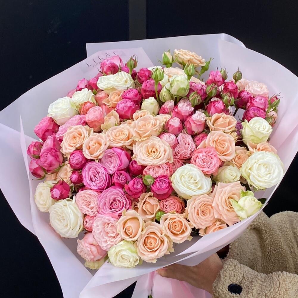Альстромерии, Гвоздики, Кустовые розы, Лизиантусы, Розы, Хризантемы