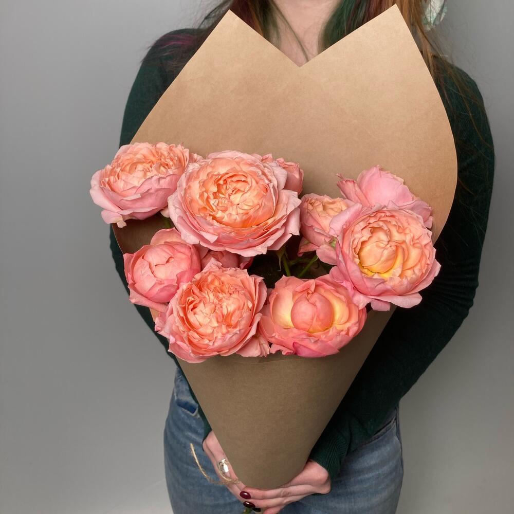 джульетта роза пионовидная – 3 шт.Крафт бумага – 1 шт.витамины для цветов – 1 шт.