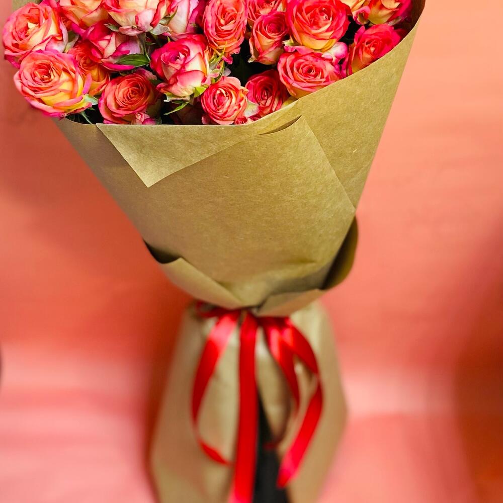 Кустовая роза – 7 шт.Упаковка крафт – 2 шт.