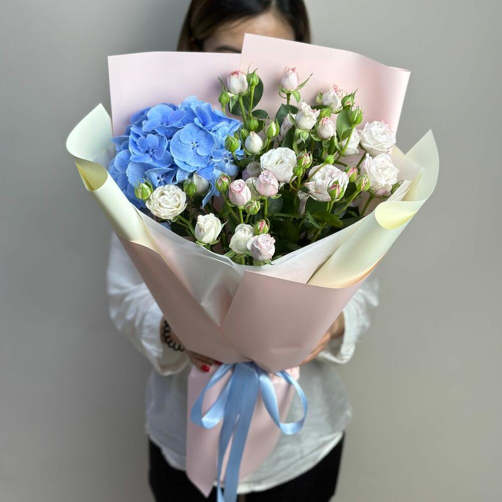 Альстромерии, Гвоздики, Кустовые розы, Лизиантусы, Розы, Хризантемы