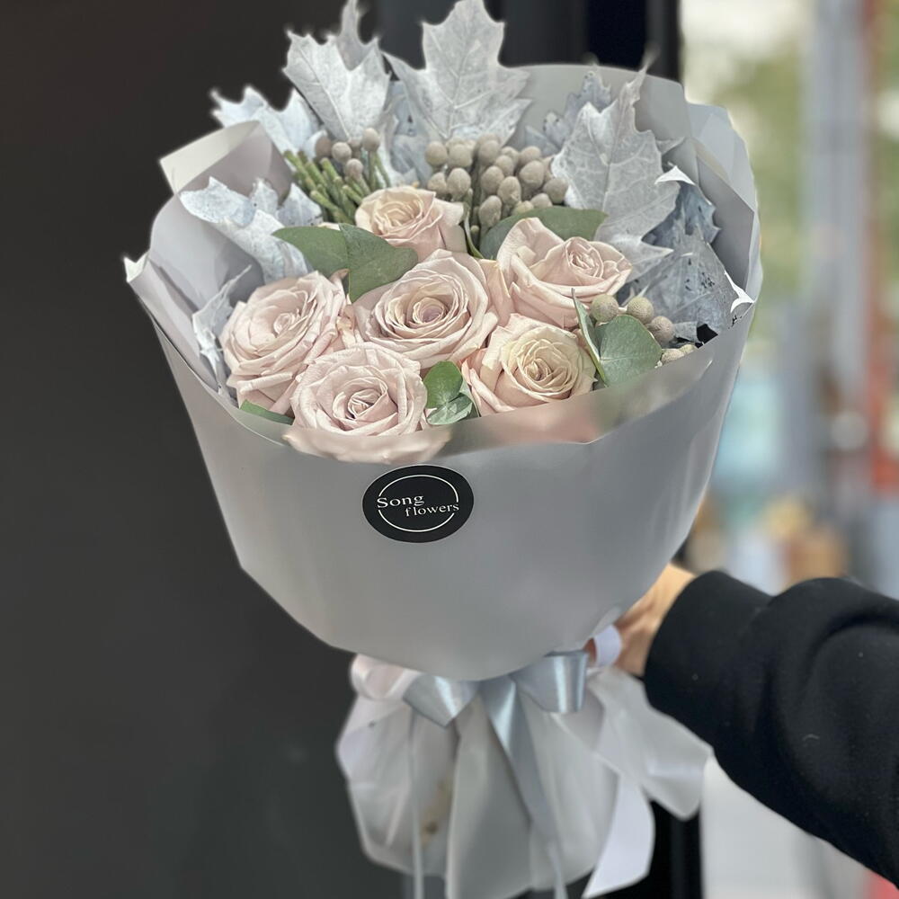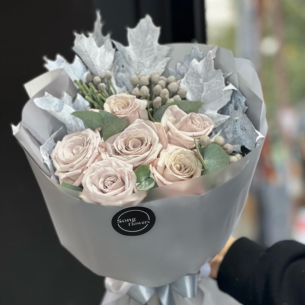 Кустовые розы, Лизиантусы, Розы, Сухоцвет