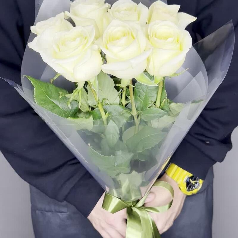 Лента атласная – 1 шт.Упаковка дизайнерская – 1 шт.Роза одноголовая эквадор – 7 шт.