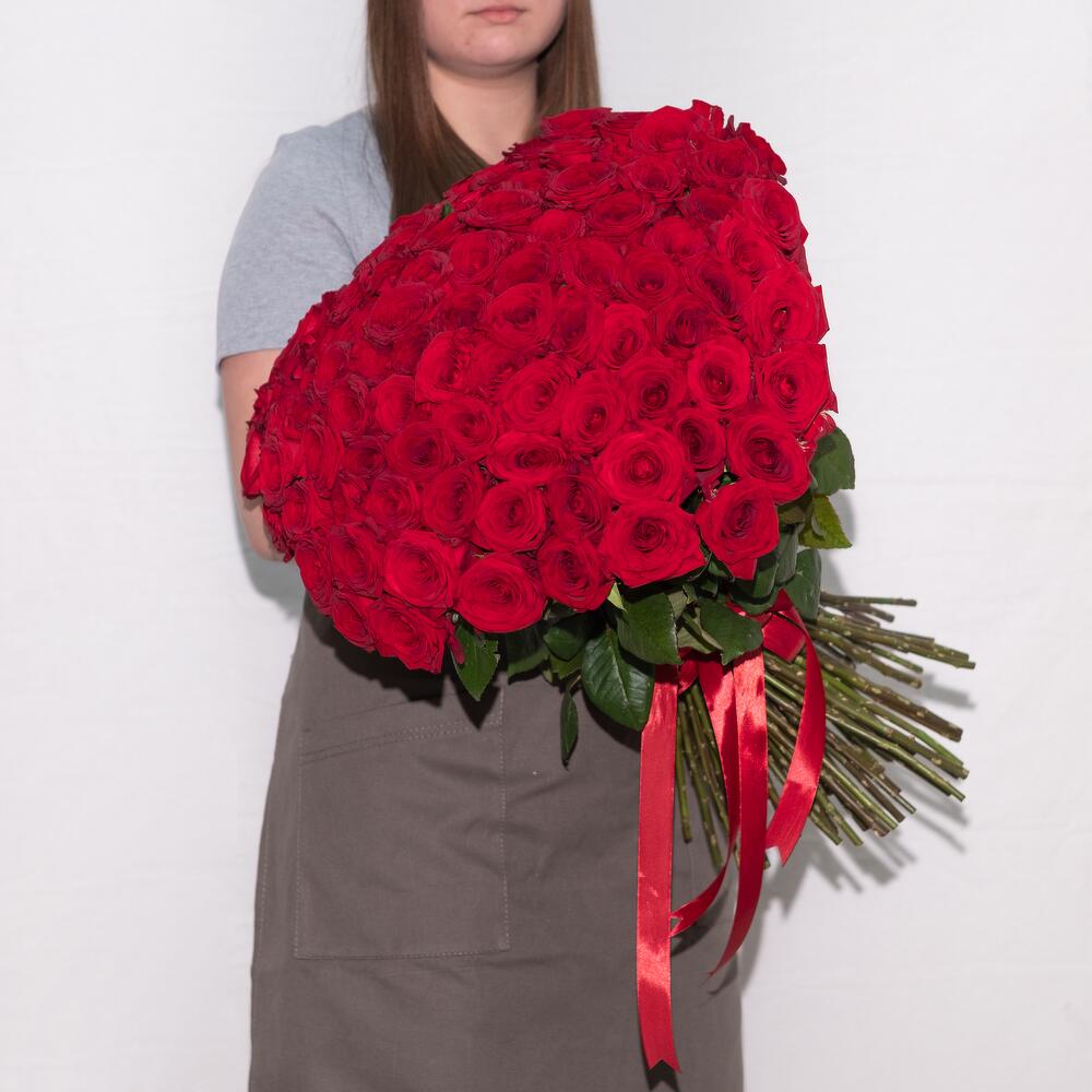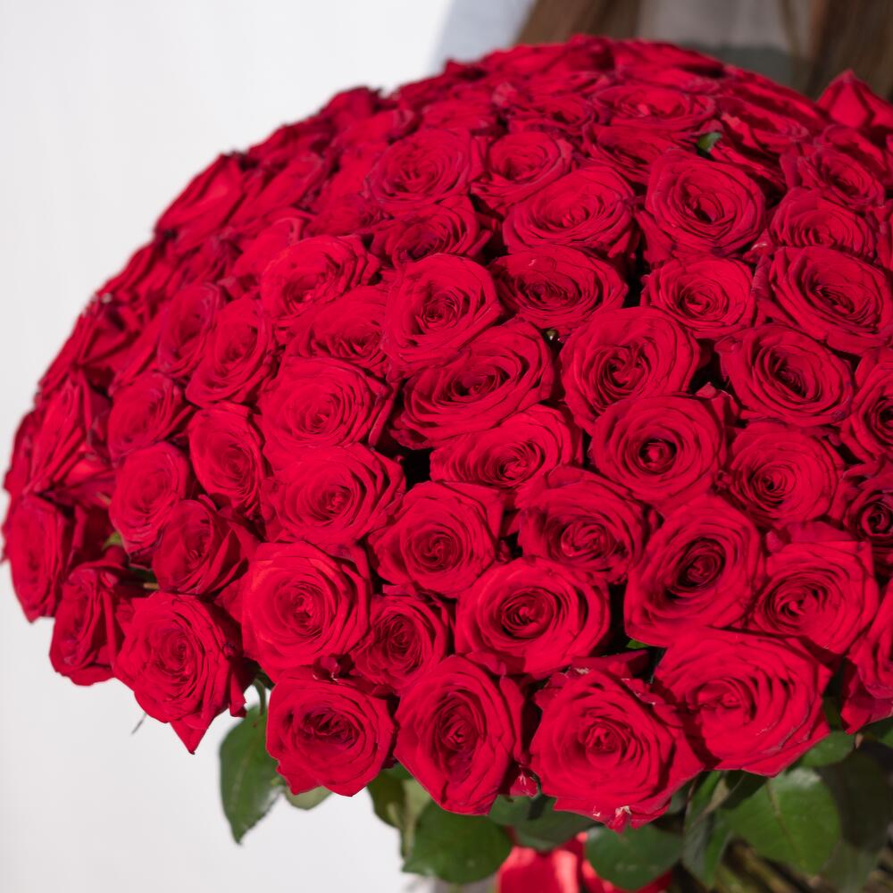Роскошный букет из 101 красной розы. Букет 158 ALMOND ROSES