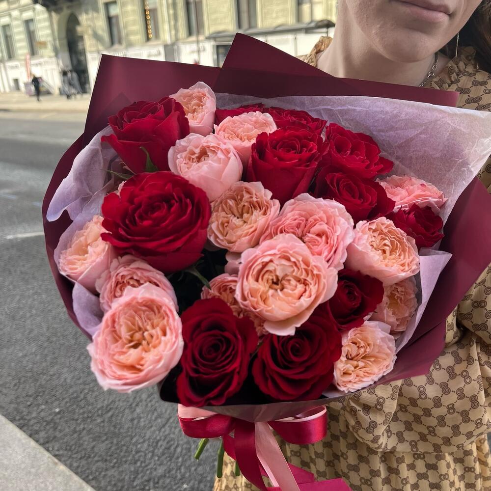 РУФЬ премиум монобукет из красных роз и пионовидной Джульетты