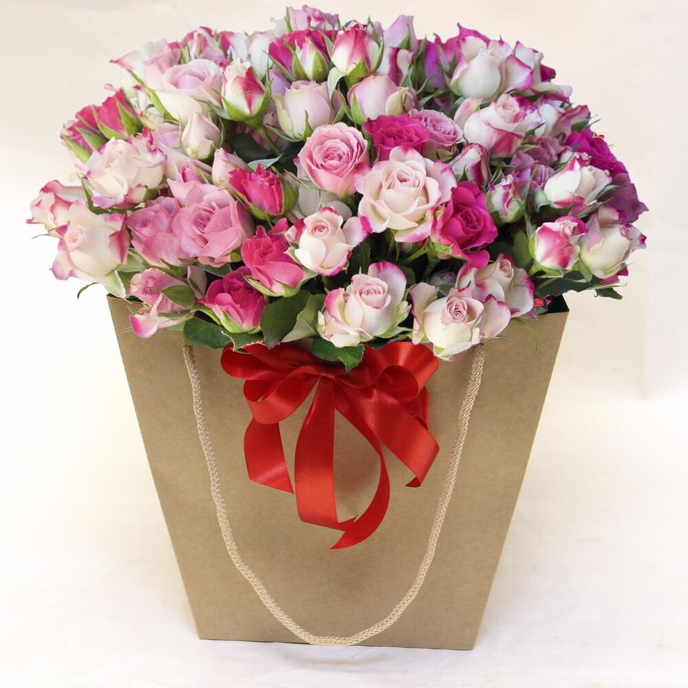 Гвоздики, Кустовые розы, Пионовидные розы, Розы
