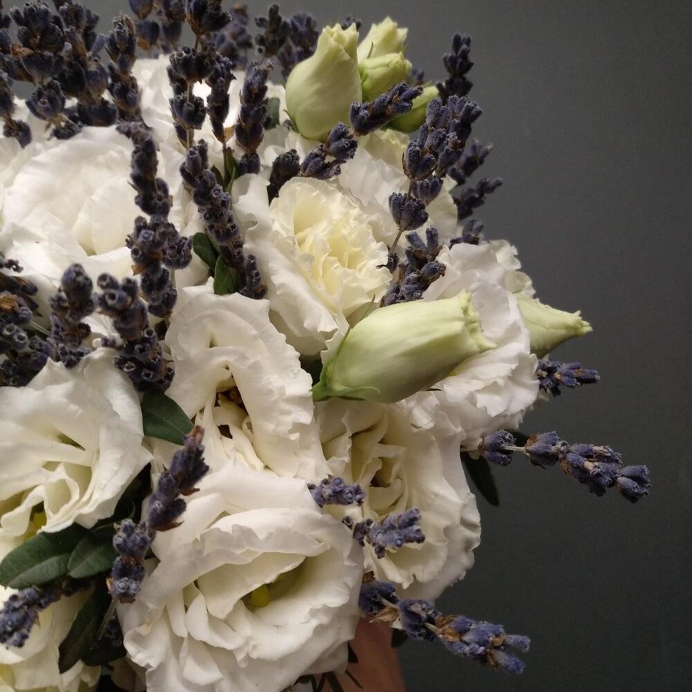 Букет невесты из эустомы и лаванды