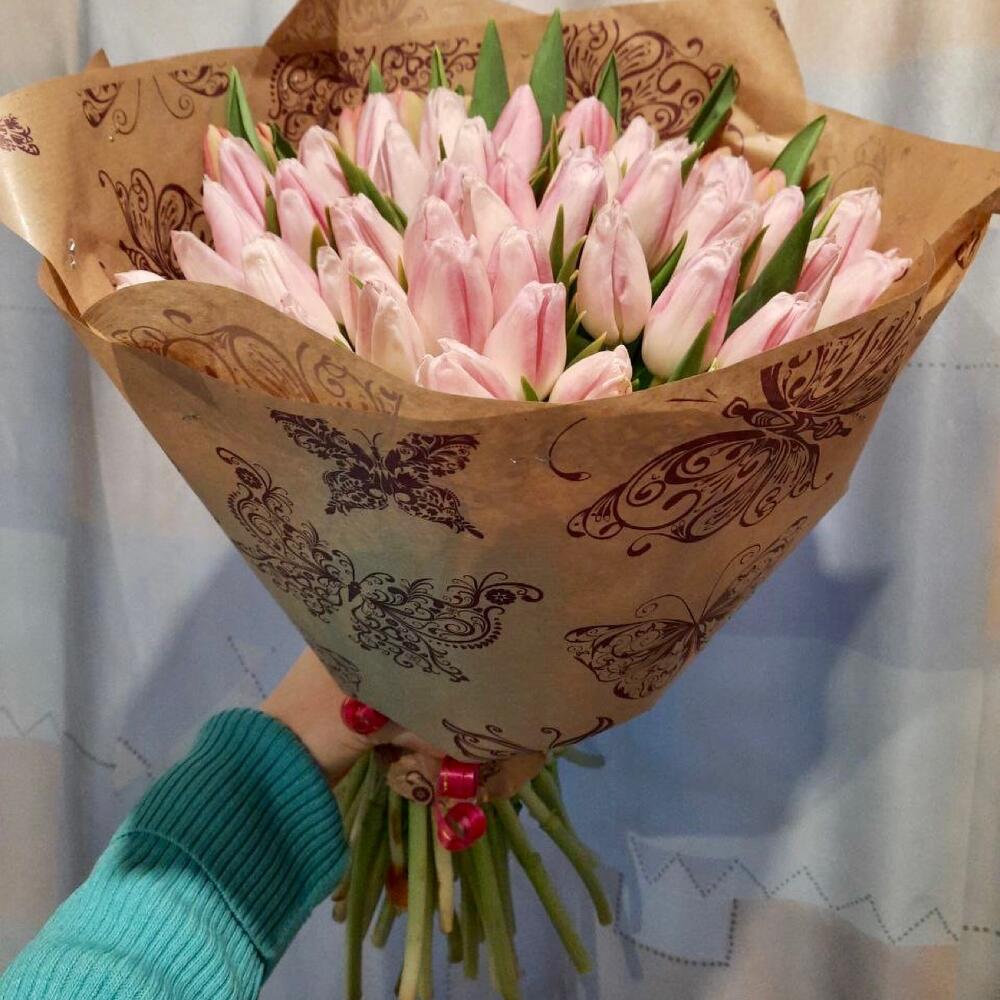 Букет из 51 нежно-розового Тюльпана